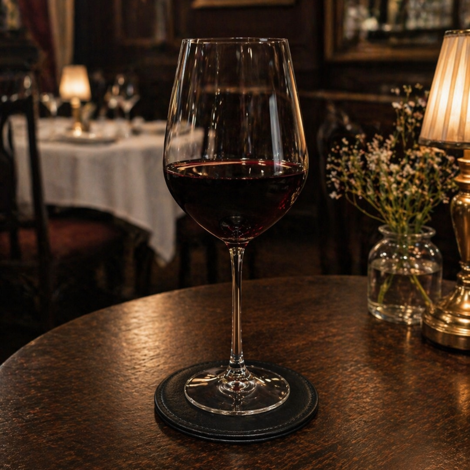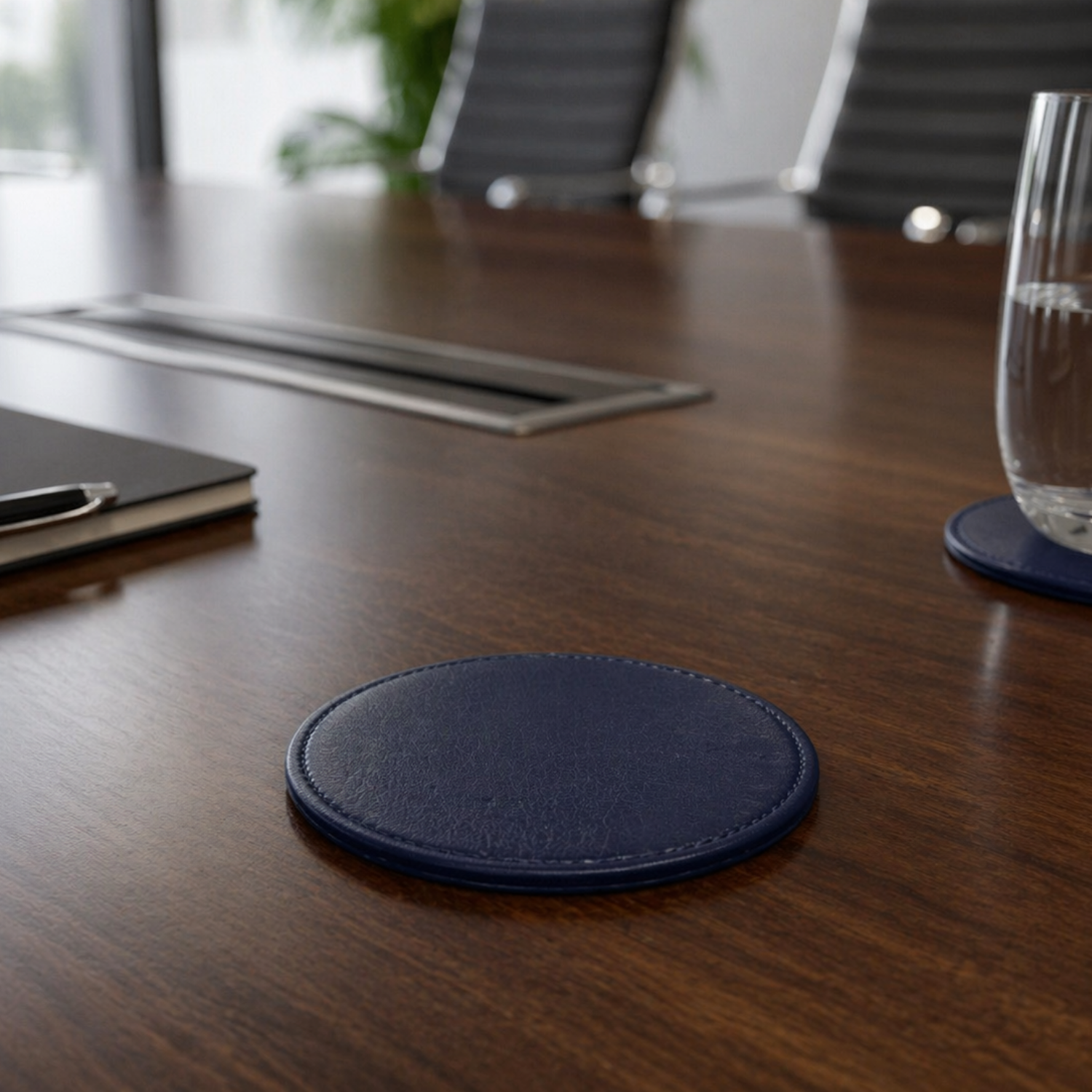 Elegante, funcional e pensada para complementar a apresentação à mesa, esta base de copo redonda em couro vegano alia simplicidade a um acabamento cuidado.